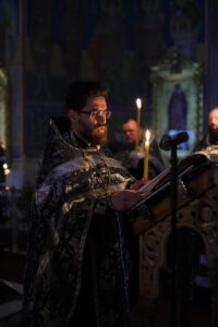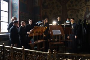 Богослужебные песнопения исполнил хор Калужской духовной семинарии под управлением воспитанника IV курса Карпенко Ивана и хор Калужского духовного училища под управлением воспитанника III курса Ремешевской Анастасии.