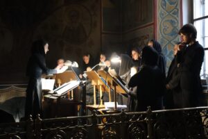 Богослужебные песнопения исполнил хор Калужской духовной семинарии под управлением воспитанника IV курса Карпенко Ивана и хор Калужского духовного училища под управлением воспитанницы III курса Орос Валерии.