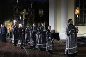 На утрени Великой Субботы пелась 17-я кафизма с «Похвалами», был исполнен канон с ирмосами. После великого славословия с пением погребального «Святый Боже» был совершен крестный ход с Плащаницей вокруг собора.