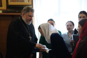 12 апреля 2026 года студенты Калужского Духовного училища поздравили ректора Калужского духовного училища протоиерея Иоанна Паюла с праздником Светлого Христова Воскресения