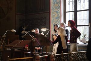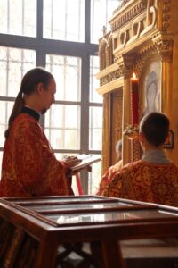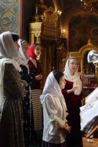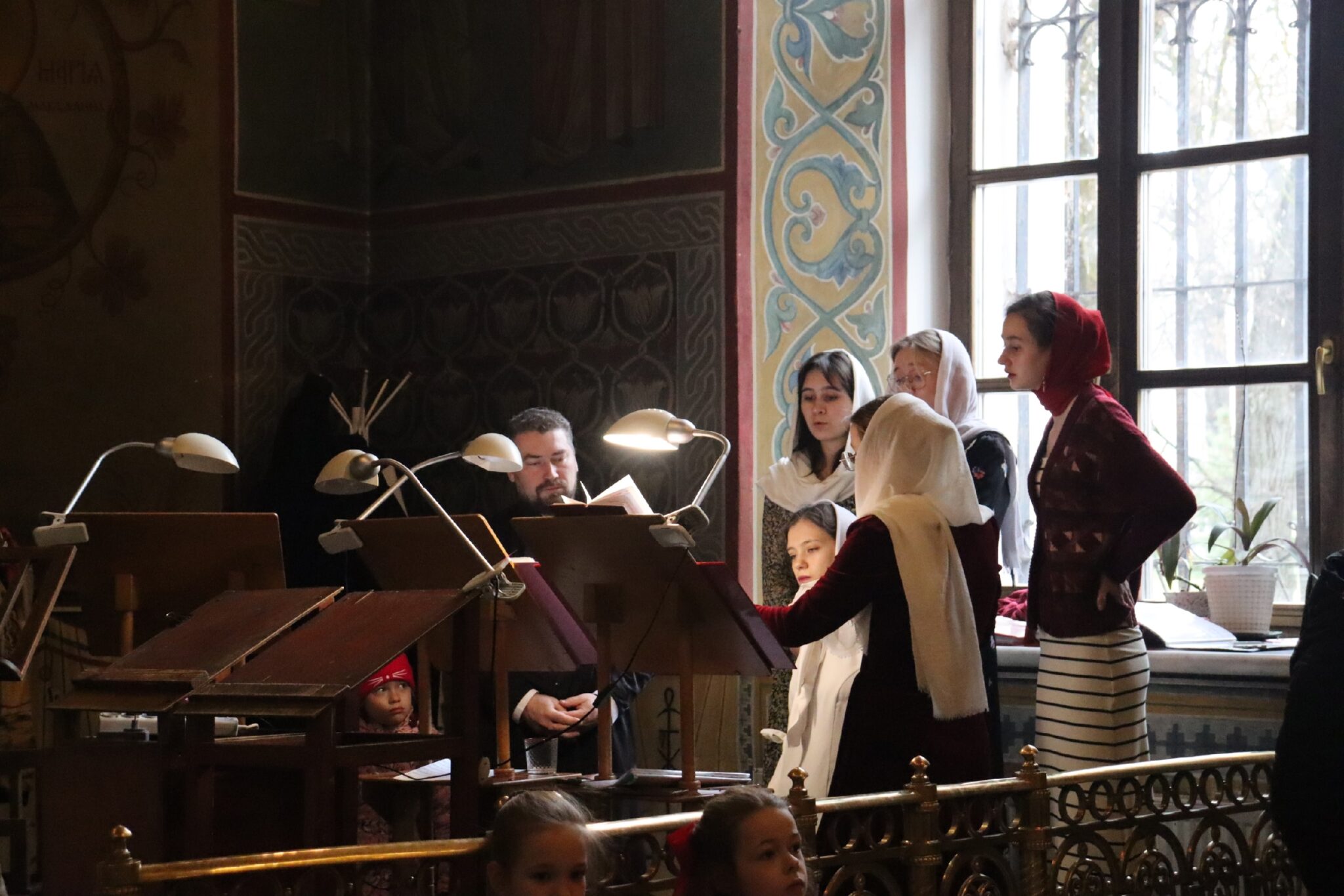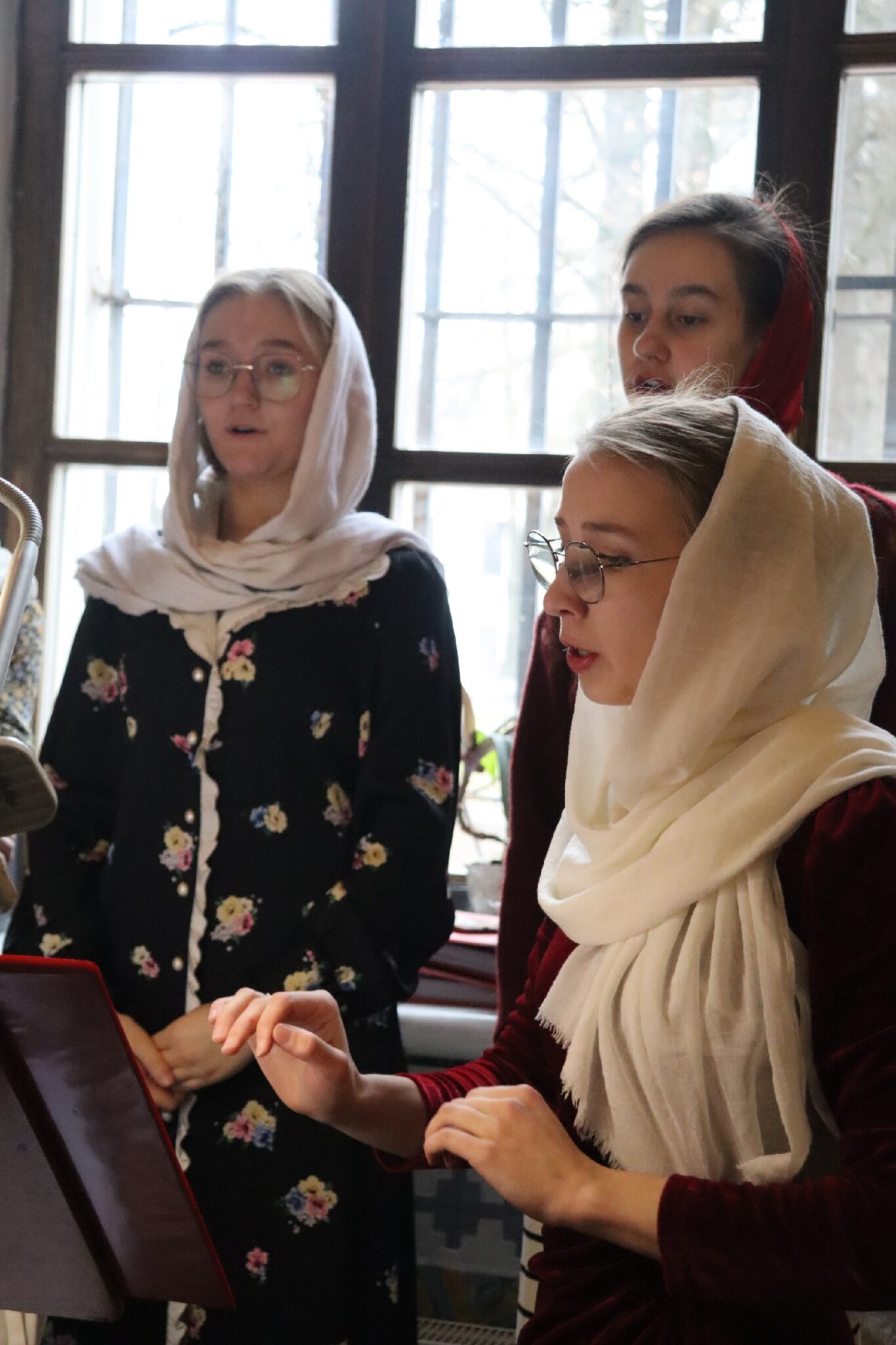 Богослужебные песнопения исполнила певческая группа Калужского духовного училища под управлением воспитанницы IV курса Экономовой Марии.