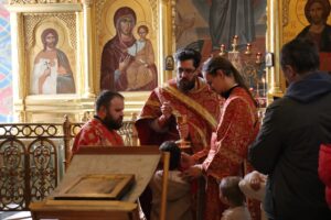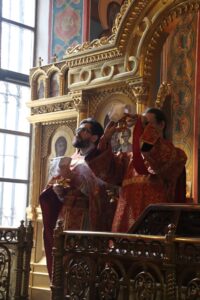 12 апреля 2026 года в праздник Светлого Христова Воскресения в Свято-Троицком кафедральном соборе города Калуги была совершена Литургия, которую возглавил ключарь собора иерей Максим Лихонин.