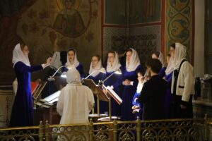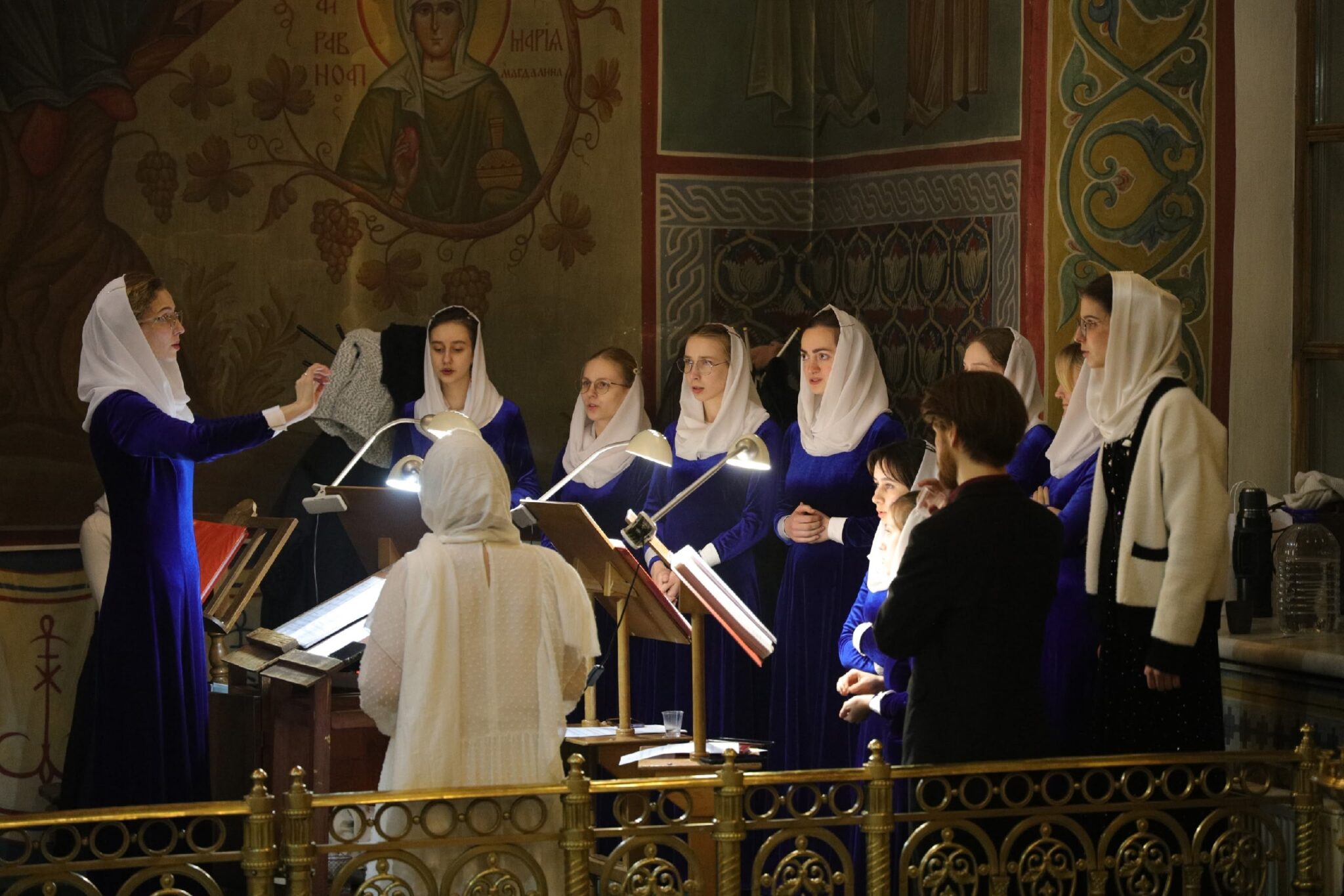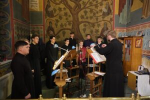 Богослужебные песнопения исполнил хор Калужской духовной семинарии под управлением воспитанника IV курса Карпенко Ивана и хор Калужского духовного училища под управлением воспитанницы IV курса Павловой Марии.