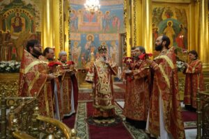 Полунощницу совершили: иеромонах Алексий (Щукин); иерей Владимир Зиновьев; протодиакон Сергий Комаров.