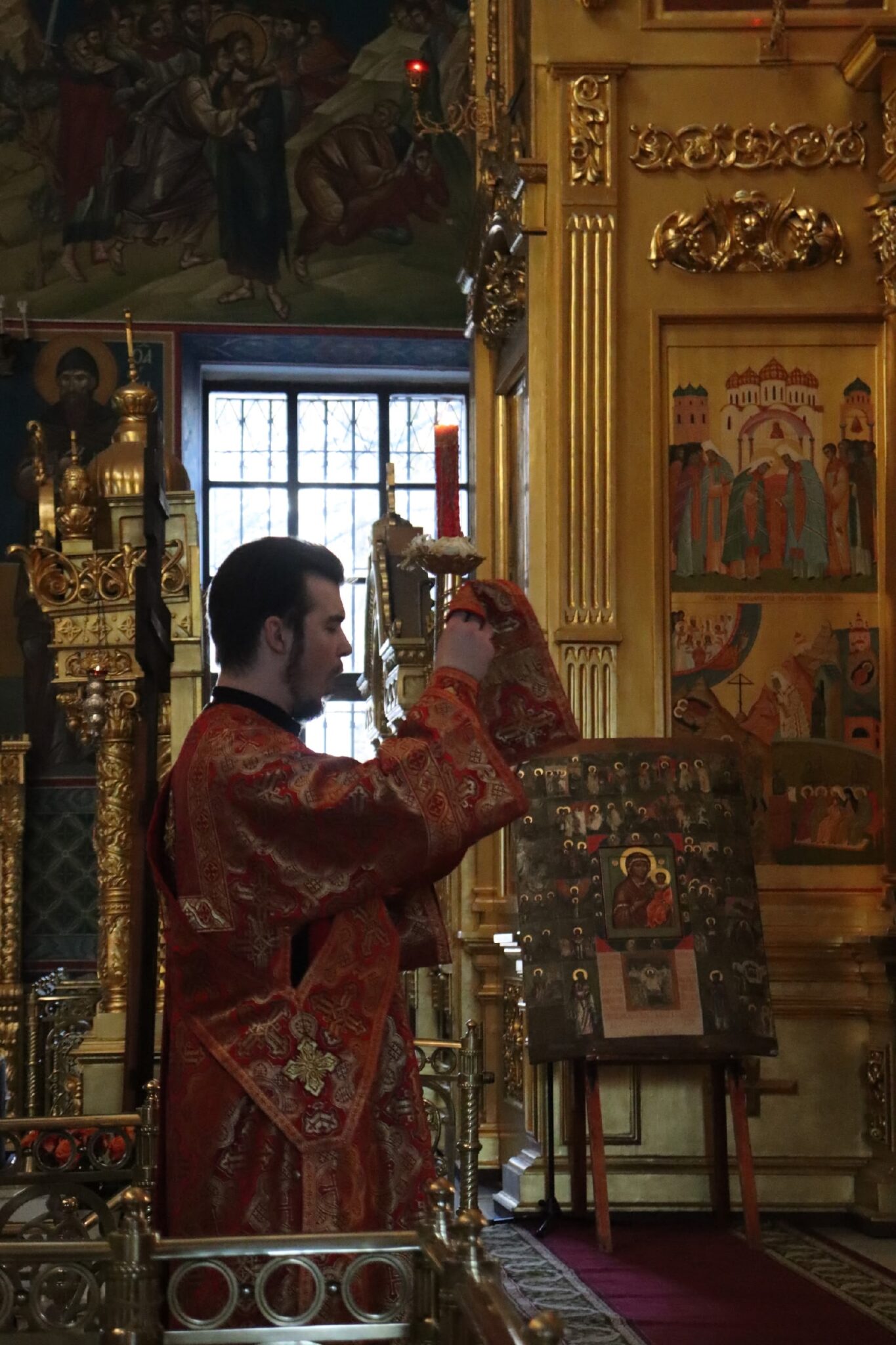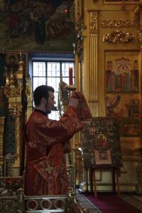 16 апреля 2026 года в канун Пятницы Светлой седмицы в Свято-Троицком кафедральном соборе города Калуги было совершено вечернее богослужение, которое возглавил ключарь собора иерей Максим Лихонин.