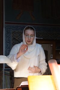 Богослужебные песнопения исполнил хор Калужского духовного училища под управлением воспитанницы IV курса Экономовой Марии.