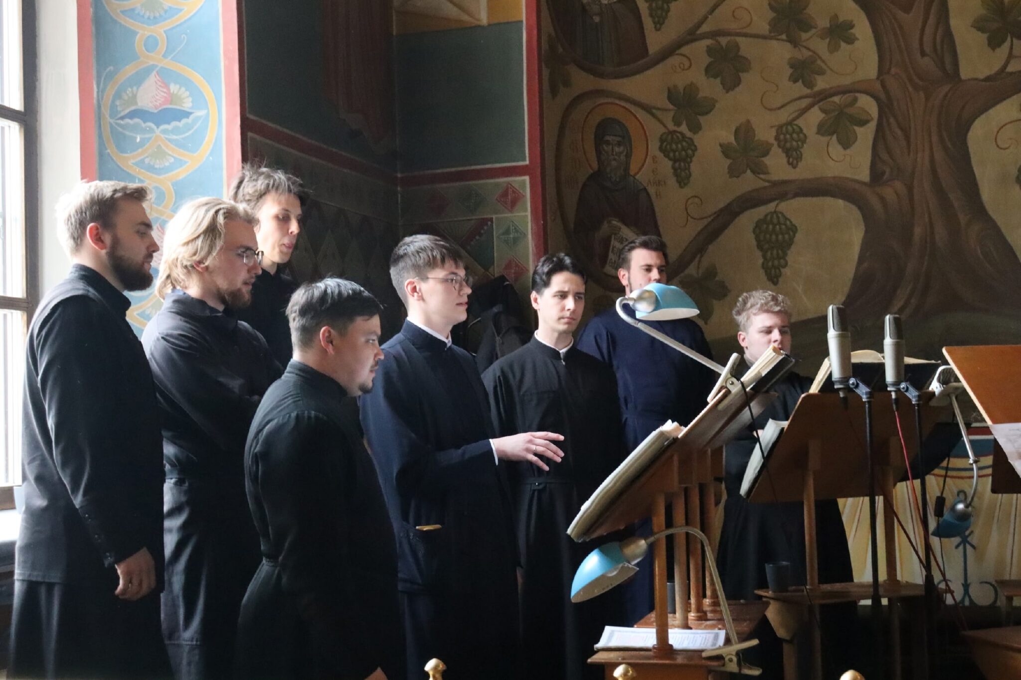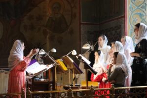 Богослужебные песнопения исполнил хор Калужской духовной семинарии под управлением воспитанника II курса Комарова Илариона и хор Калужского духовного училища под управлением воспитанницы IV курса Павловой Марии.